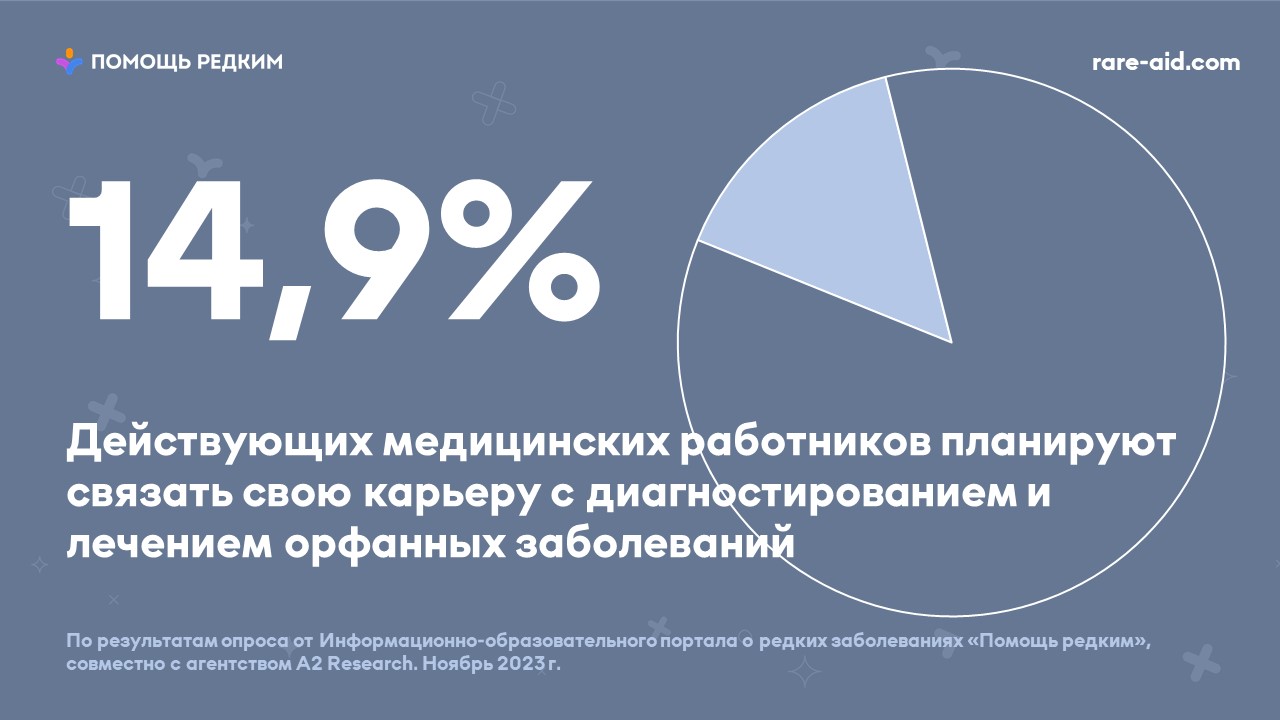 По результатам опроса, 14,9% врачей планируют связать свою карьеру с орфанными заболеваниями.