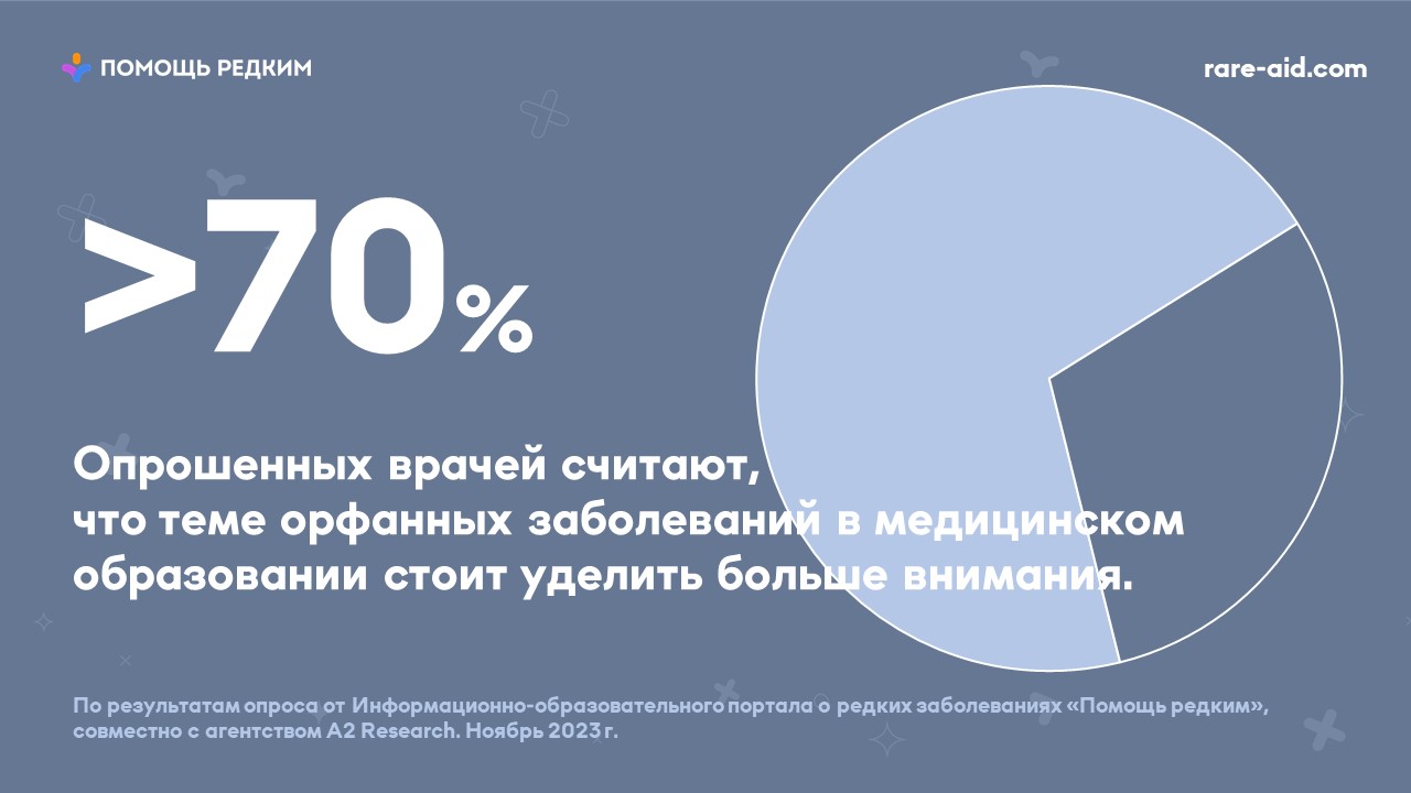 Более 70% врачей считают, что в образовательных программах медицинских вузов стоит уделять больше внимания орфанным заболеваниям. С этим согласны и большинство (68%) опрошенных студентов.