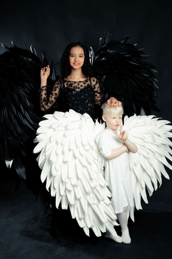 Со временем Мирона стали приглашать на фотосессии. Нередко его снимают вместе со старшей сестрой — фотографам нравится этот поразительный контраст родных брата и сестры. Непроизвольно рождаются образы: белый и черный ангел...