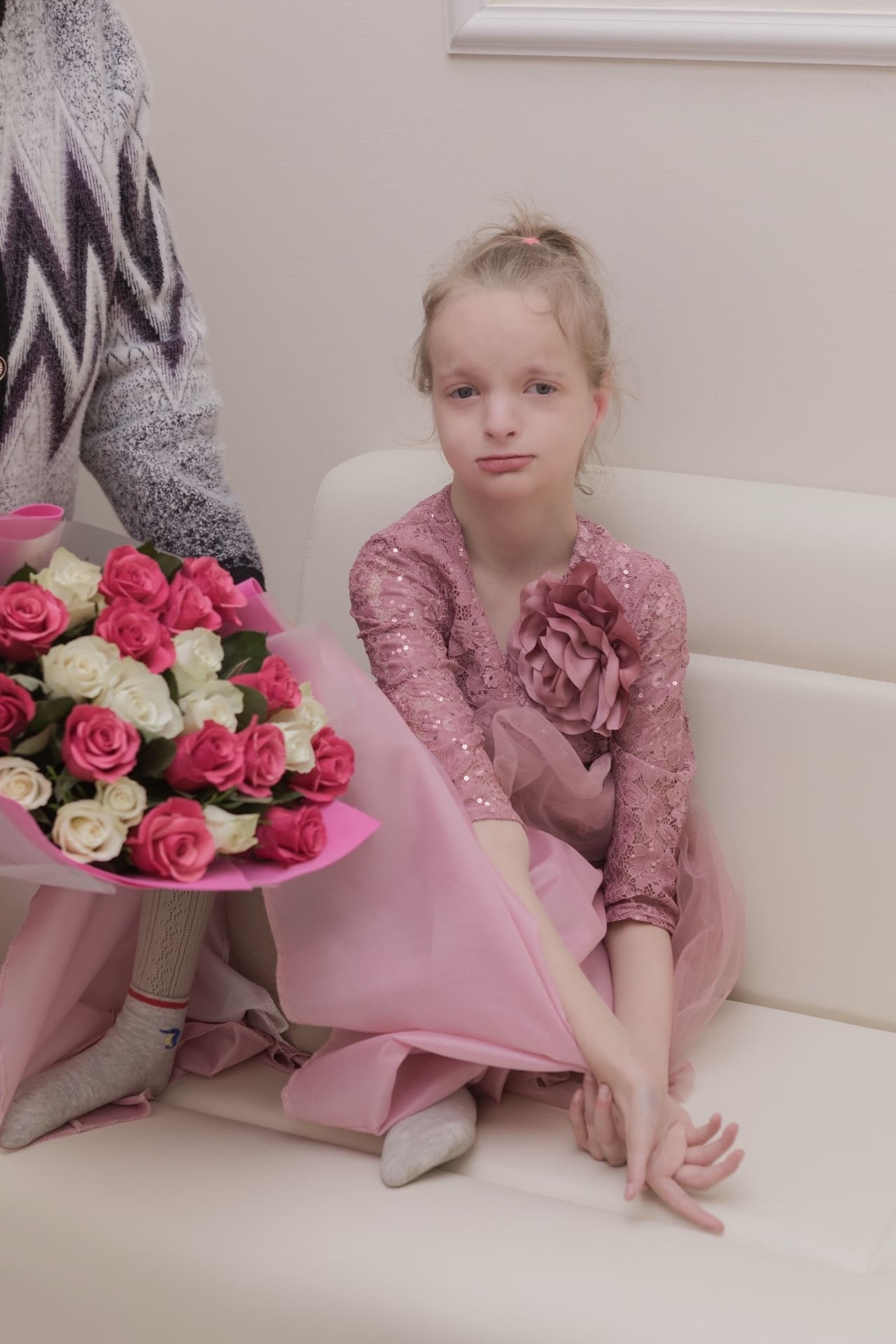 После родов малышка плохо набирала вес, её лечили от инфекции и держали в патологии. К маме её приносили всегда спящую, сытую и туго запеленанную. Медсёстры между собой называли её инопланетянкой — у неё была очень широкая переносица и большие широко посаженные глаза.