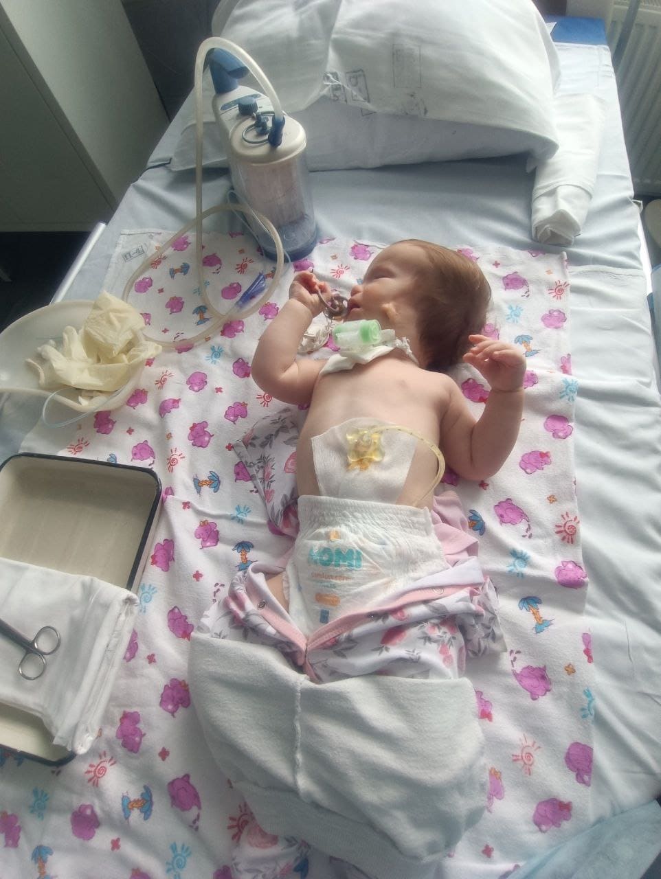 В реанимации Марьяна провела месяц, затем малышку перевели в отделение патологии новорожденных. После нескольких неудачных попыток ее удалось снять с ИВЛ, но она осталась кислородозависимой: не могла дышать, лежа на спине. И все же научилась на боку и животе.