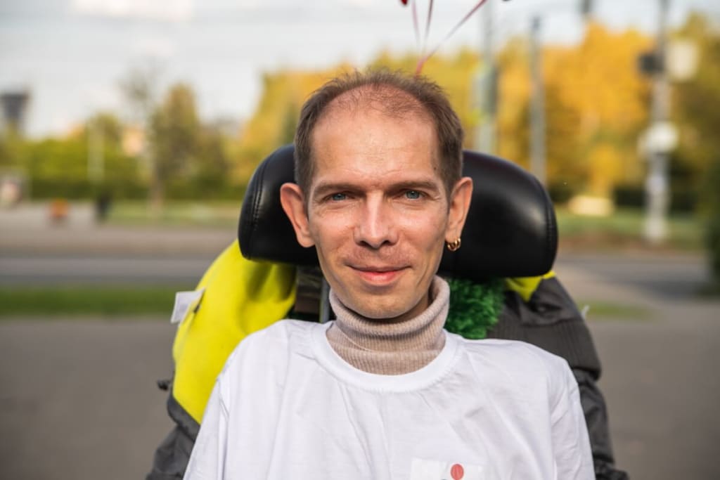 Еще одно редкое заболевание, которое как и БАС, лишает мышцы возможности двигаться — спинальная мышечная атрофия (СМА). Причиной СМА является генетическая мутация, лишающая нейроны спинного мозга необходимого белка. По данным фонда «Семьи СМА», в России 1266 таких больных, среди них 359 взрослых. Один из них — 40-летний Олег Васильев.