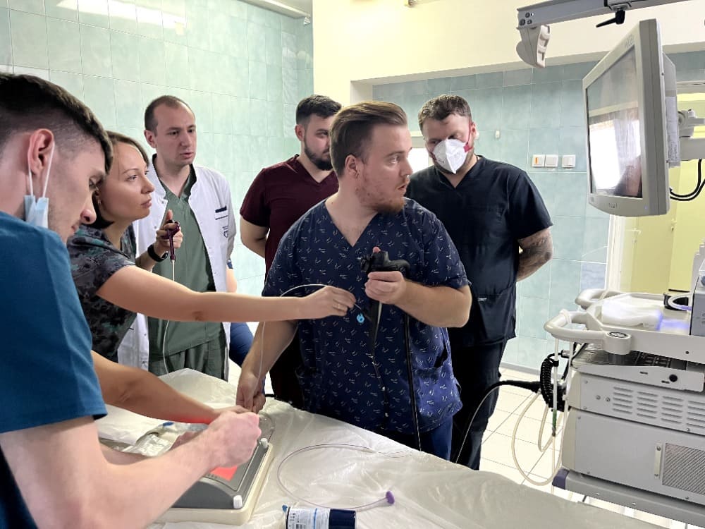О том, как проходит обучение чрескожной эндоскопической гастростомии рассказал ведущий эндоскопической школы, эндоскопист «ГКБ им. В.М. Буянова Департамента Здравоохранения Москвы» Евгений Кудрявицкий: «Врачи узнают и обсуждают все нюансы проведения эндоскопических операций, послеоперационного ухода, тренируются на макетах желудка и главное — ассистируют на операции по установке пациенту чрескожной эндоскопической гастростомы».