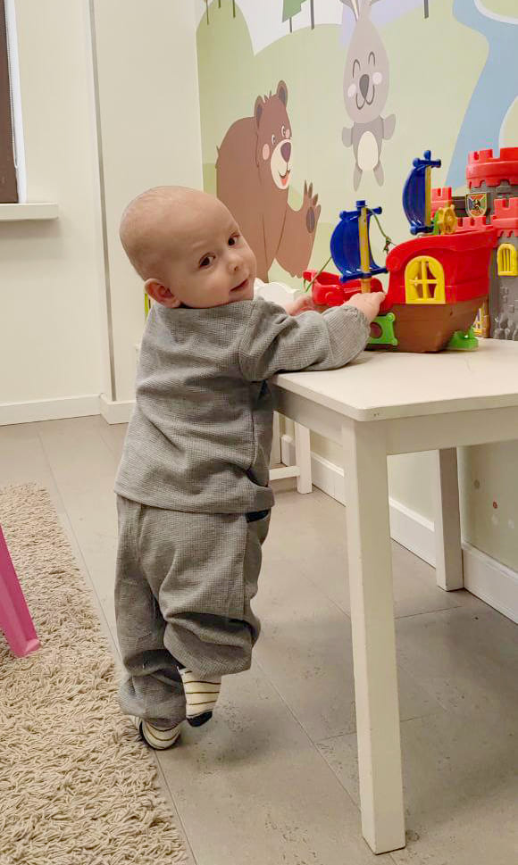 Тем временем мальчик учится ползать, сидеть и стоять — несмотря на маленькую ножку, у него это хорошо получается. Он старается и хочет быть таким же, как все. Но следующий этап — ходьба. Без протеза тут не обойтись, поэтому семья занимаемся его подготовкой, чтобы Илья смог сделать первые шаги.